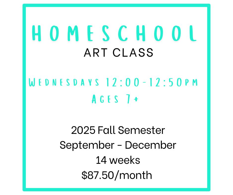 Homeschool Art Class is a SEMESTER COMMITMENT. Upon registering for class, you are agreeing to pay the monthly-auto draft each month whether your child attends all classes or not.